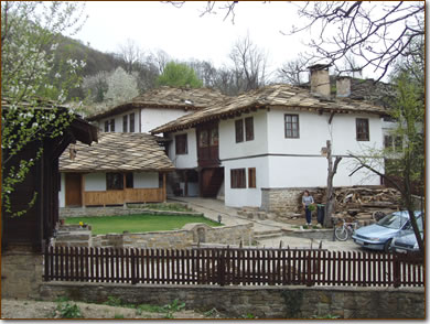 Обградена с каменен зид и високи дървени порти. Когато влезете, ще Ви завладее неподправения дух на стария българския дом. Сякаш стопаните, които са живели преди векове, са излезли за малко.