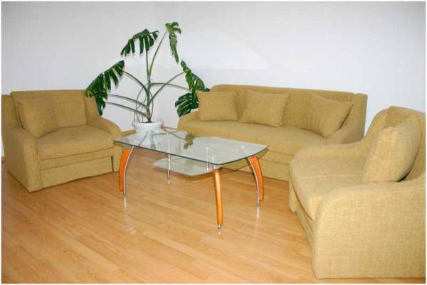 Големият апартамент (60 кв.м) се състои от 3 отделни стаи - спалня, дневна и кухня, с един санитарен възел.
