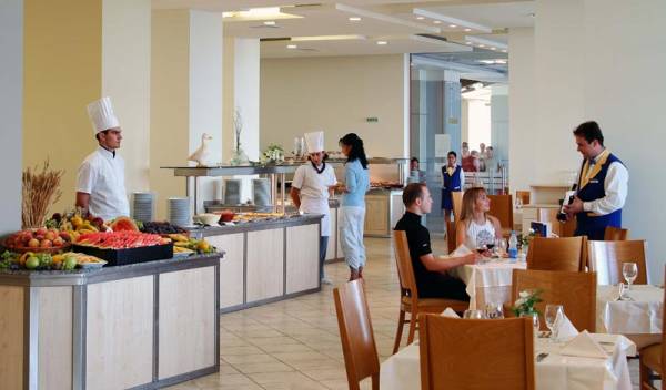 Основният ресторант е с капацитет от 250 места, с богат и разнообразен бюфет. А-la-carte ресторантът предлага специалитети от средиземноморската кухня. Феста Панорама - външен пул-бар с голямо разнообразие от алкохолни и безалкохолни коктейли. Има и нощен клуб / Караоке бар място за забава и релакс, оборудвана с голям мултимедиен екран, дансинг.