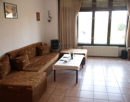 *Вила "Рай" (3-5 места)-Единична стая и стая с двойно легло с общ кухненски бокс и санитарен възел, просторен хол и веранда свързана с трапезарията.