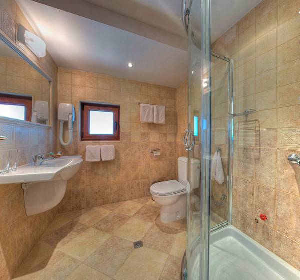 Double room: two separate beds, a terrace, a bathroom with a shower cabin, a TV set, a minibar and Internet connection