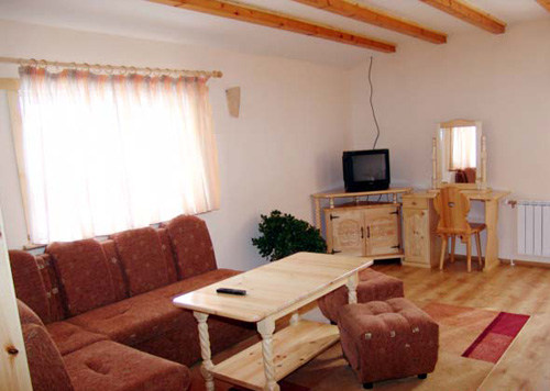 Разполага с пет двойни стаи и един апартамент. Гостите могат да използват специално предназначените помещения за хранене и готвене. Осигурен е постоянен достъп до интернет, сателитна телевизия. Релаксиращи процедури в сауна и джакузи. Осигурен трансфер от всяко летище на територията на България.