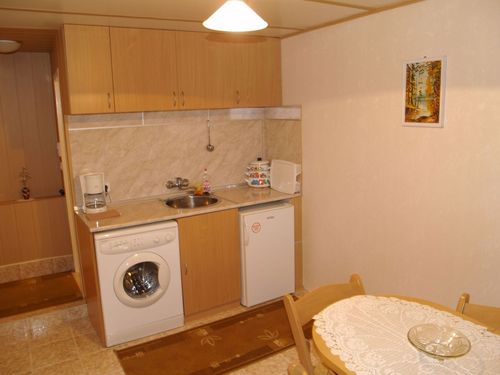 - Напълно оборудвана кухня на всеки етаж (печка + хладилник + пералня + кафе машина + пълен комплект кухненски прибори)