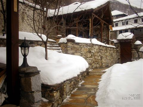 The house has accommodation capacity for seven people. Stylish dining room combines the advantages of modern technology with the cosiness of the typical architecture of the Bulgarian revival period. A typical pastoral atmosphere combined with excellent taste and pleasant simplicity. That will grab you, from the very opening of the massive yard port. The yard is beaming with flowers as well as traditional elements. The proprietor has managed to take advantage of the steep slope in order to create an amazing sense of space.