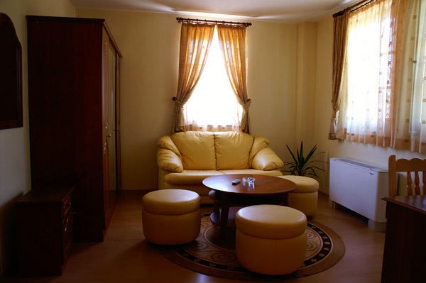 The three-star hotel "Izgrev" has 8 luxurious rooms. All of the have own bathrooms , bathtub or shower , local heating system and TV. The rooms are not identical , each room has its own style and different furniture, colours of the walls , damasks , curtains etc.
