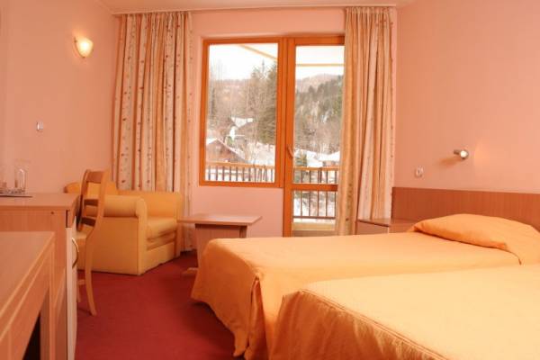 Hotels > Hotels in ChiflikThe Diva Hotel is located between the northern boundary of Troyan Balkan and Vasilyovska mountain in the valley of the River Beli Osam. The recreational center next to the complex makes it unique for the Troyan Balkan. It offers mud, balneotherapy, massage and relaxation procedures, aromatherapy, and opportunities for sport - fitness, tennis court, table tennis, billiard and bicycles for rent. Guests can relax in two mineral pools with water temperature of 34°C throughout the year.