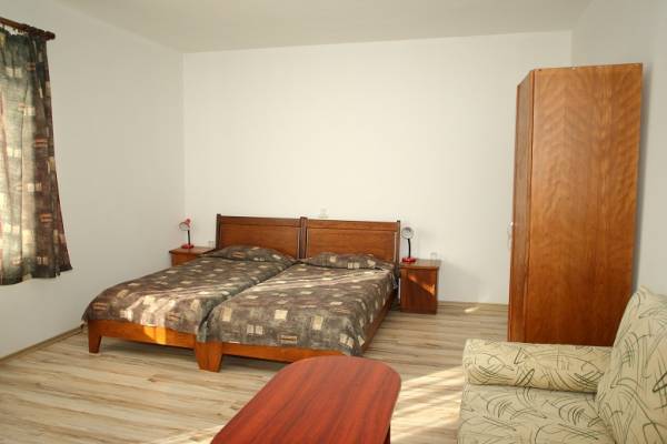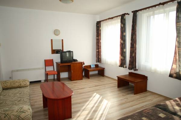 The hotel has 50 beds in 24 modernly equipped rooms with every convenience: separate bathroom, satellite TV, minibar, hair dryer, phone and Internet. The guests can choose between single, double and triple room, deluxe room or studio. Each room has a different interior, fire alarm system and individually adjustable central conditioning system. Optional additional bed. Buffet breakfast.