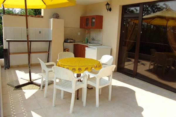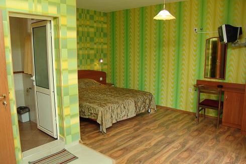 Hotels > Hotels in BourgasA new building at a quiet place in the forest close to the beach with a large yard with a barbecue and playground for children. A pleasant combination of the quietness and calmness of nature and the coziness and convenience of the rooms. The rooms are furnished in a nice modern style with a TV set, their own bathroom with shower cabin and WC, air conditioner, free of charge WI-FI internet service, panorama terraces. Each room has its own completely equipped kitchenette. The apartment consists of two separate rooms with a common bathroom with WC and big terrace with a barbeque. The yard is buried in greenery and flowers. You can walk barefooted on the meadow and water it from the yard tap. You can light a fire and grill the fish you have caught. The you can celebrate with cold beer and your friends and have a really good meal. If you like we can make a delicious barbecue for you at the yard.