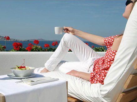 The hotel's intimate Grace Restaurant is located on the pool level. This is where the signature breakfast buffet is served. Recognising the night-time allure of Mykonos, breakfast -la-carte is offered throughout the day, catering for guests who choose to sleep-in. Mouth-watering light-fare from the menu is also available throughout the day.