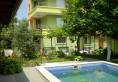 There are dining-room and kitchen on the ground floor, as well as a room for rest. The building is equipped with a router for our guests to receive wireless Internet connection. The open air swimming pool, surrounded by wonderful well maintained Mediterranean garden, chaise-longue and BBQ fire place every summer becomes the favorite spot for our visitors. The yard around the pool is vast but also fenced for providing calm and relax atmosphere for the families with kids. Two women are in charge of the neatness and comfort of our guests during the summer season. Those women could offer you nice Bulgarian meals by request.