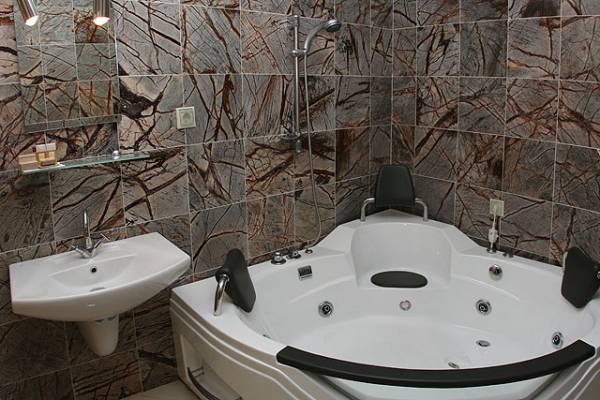There are 6 standard and 5 luxurious rooms and 1 VIP studio at guests' disposal. The standard rooms are equipped with computer with Internet connection, bathroom with hydromassage shower cabin, hair-dryer, direct telephone line, air-conditioner and minibar. the luxurious rooms have individsual interior and are furnished with massive retro-style furniture. Computer with Internet connection, large bathroom with double hydromassage shower cabin or bath-tub with Jacuzzi, hair-dryer, direct telephone line, air-conditioner and minibar are at guests' disposal. The VIP studio is luxuriously furnished with double king-sized bed, computer with Internet connection, large bathroom with double hydromassage shower cabin with jacuzzi and sauna.
